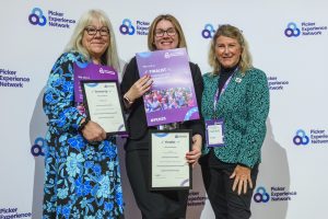 Picker Network Experience Awards – Birmingham, 2025. Jane Stokes, Carers Voices Officer collects the award for Healthwatch Essex (left).