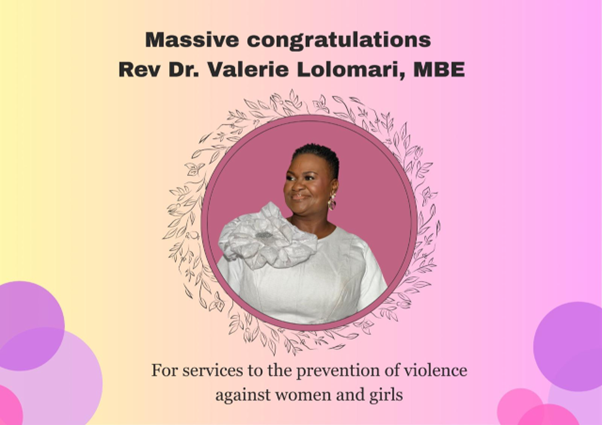Valerie told me, “I’m honoured to share that I have been awarded the Member of the Order of the British Empire (MBE) for services to the prevention of violence against women and girls. This recognition reflects years of survivor-led advocacy, partnership working, and collective effort across communities, statutory services, and voluntary organisations. It belongs to every voice that has contributed to safeguarding, prevention, and meaningful change. I remain committed to collaboration, accountability, and impact as we continue working together to create safer environments for women and girls. Thank you for the trust, partnership, and shared commitment to this work.”